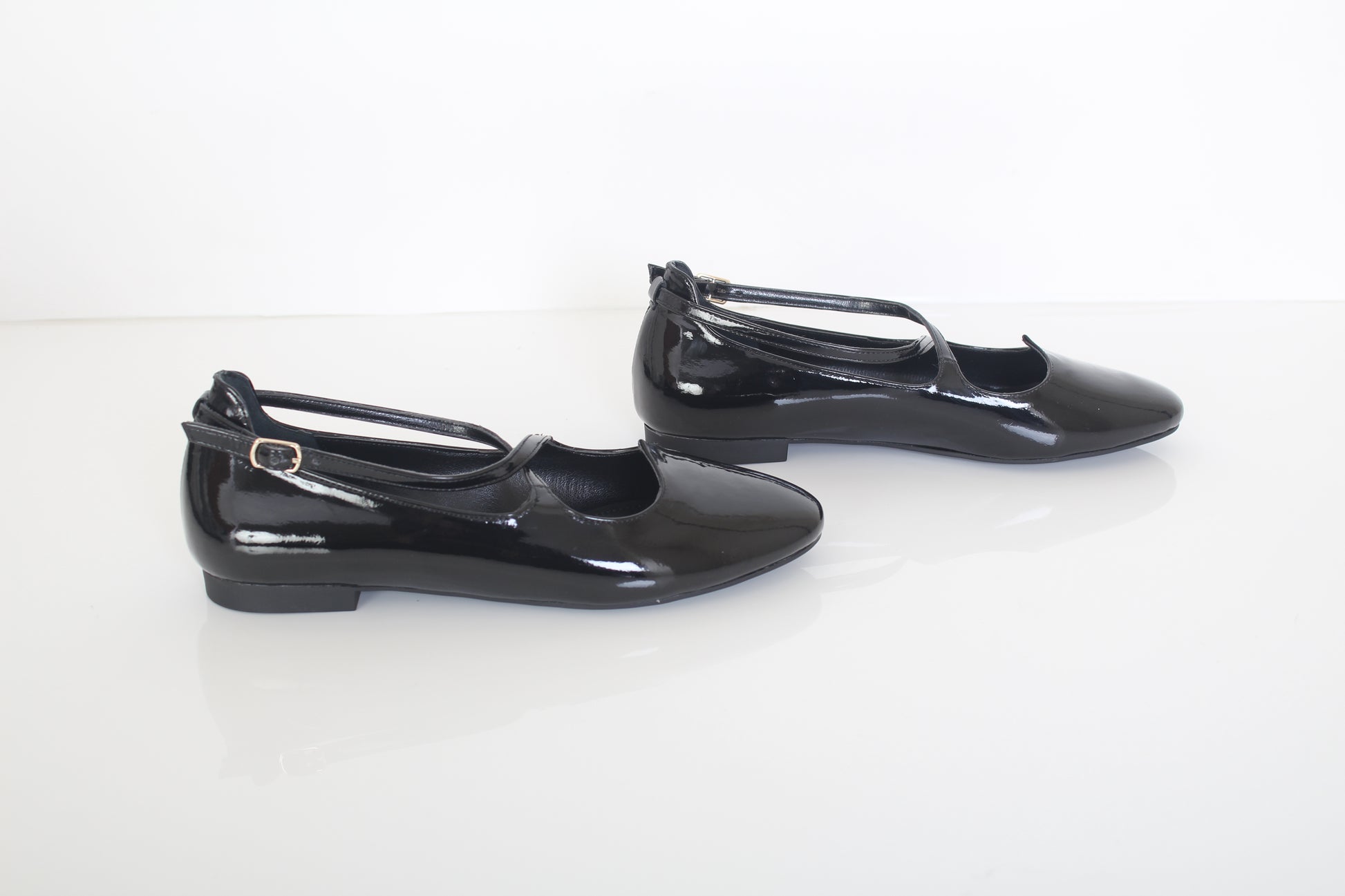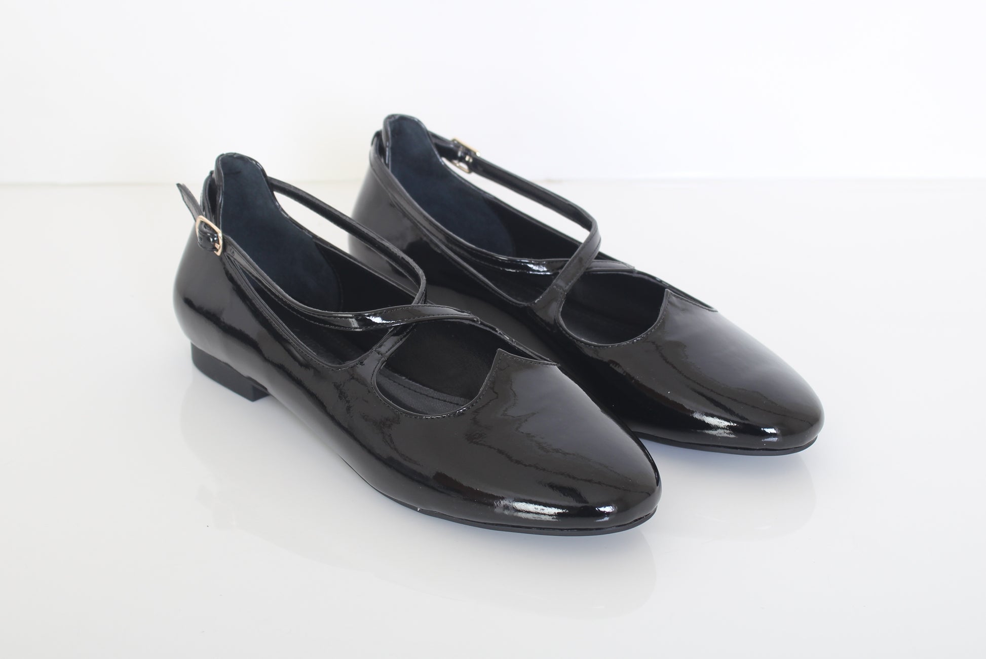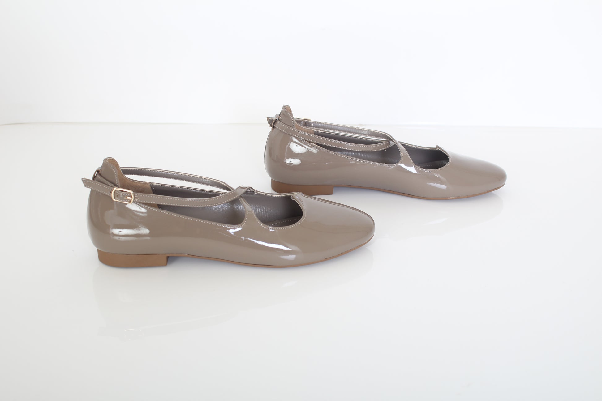 The PATENT BALLERINA dress shoe is crafted with a modern twist and timeless appeal. It features a classic rounded toe and low-cut vamp, providing a snug fit and secure support. The shoe is made with premium materials and a durable sole, making it perfect for everyday wear.
